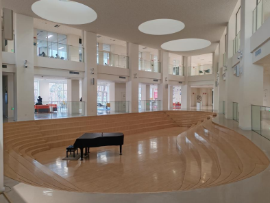 调研伊始,在西安欧亚学院人文教育学院行政事务中心主任吕采遥老师的陪同下,我院团队一行深入参观了校园整体育人环境与特色实验实训空间。从记录学院发展历程的行政楼展厅,到融合匠心与创造力的木工坊;从现代化的图书馆、多功能文体中心,到前沿的科创空间以及AI教育实验室、乐高教育创新实验室、儿童视觉艺术实验室、蒙台梭利教育实训室、琴岛等专业化实训场所,欧亚学院以学生为中心、注重实践与创新的教育教学环境给我院教师留下了深刻印象。
