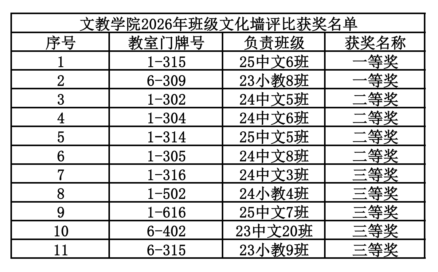 文教学院以“以文润心、以美化人”为旨归,开展2026年班级文化墙评比活动。各班级立足专业特质,将红色基因、时代脉搏与人文底蕴熔铸于方寸墙面,让每一面墙都成为浸润心灵的“无声导师”,在潜移默化中涵养优良班风学风,凝聚集体归属感与文化认同感。本次评比从创新性、思想性、艺术性、参与度四个维度综合评审,现将结果与优秀作品公示如下,学院将择优推荐参评校级评选。